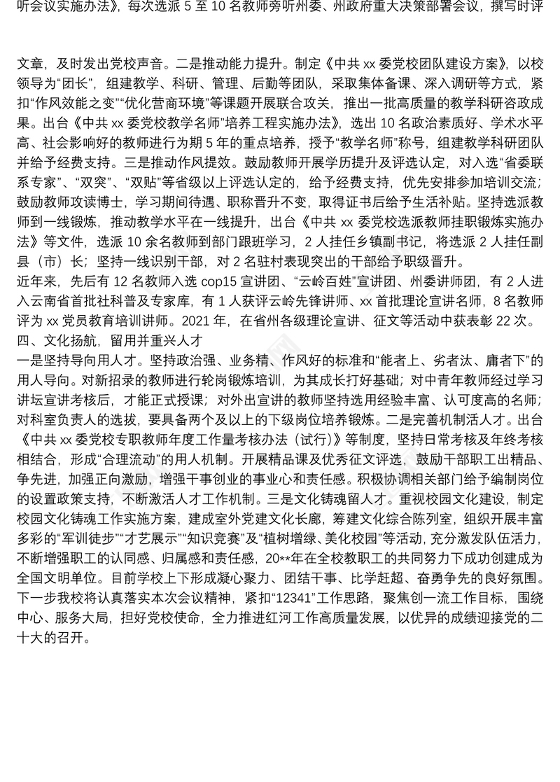 > 經(jīng)驗(yàn)事跡 > 黨校人才隊伍建設(shè)經(jīng)驗(yàn)材料:打牢人才強(qiáng)校根基 推動黨校高質(zhì)量發(fā)展.DOCX 【圖片、文字、動畫均可編輯】