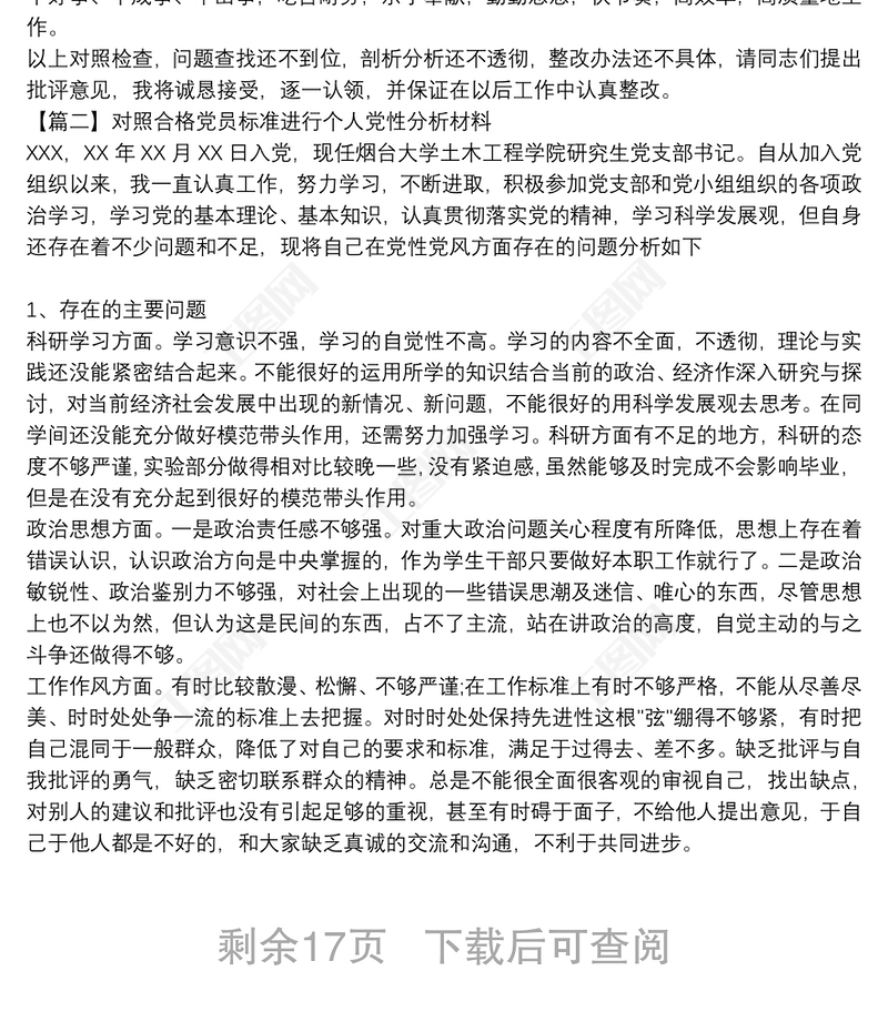 工圖網(wǎng)提供對(duì)照合格黨員標(biāo)準(zhǔn)進(jìn)行個(gè)人黨性分析材料十四篇供會(huì)員免費(fèi)下載。更多精彩黨課PPT素材,盡在工圖網(wǎng)。