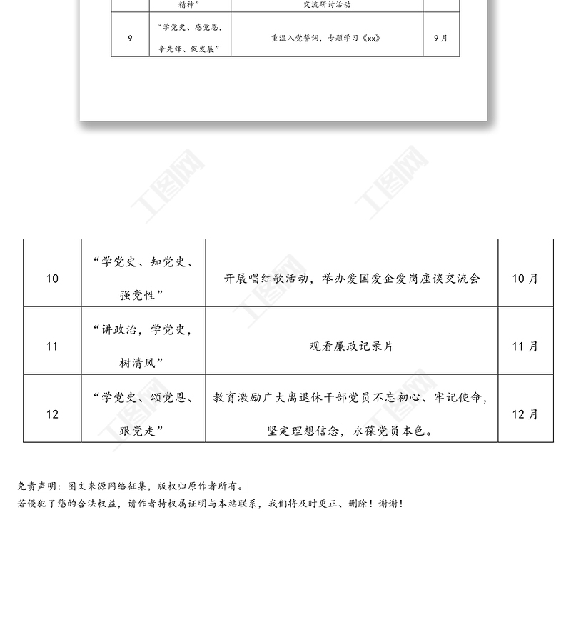 工圖網(wǎng)提供公司黨支部2021年度黨史主題黨日活動計劃表格供會員免費下載。更多精彩黨課PPT素材,盡在工圖網(wǎng)。