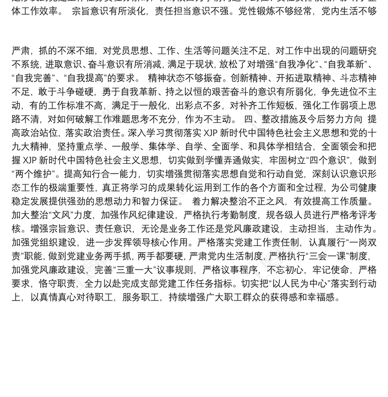 2021年巡察整改專題組織生活會黨支部班子對照檢查材料