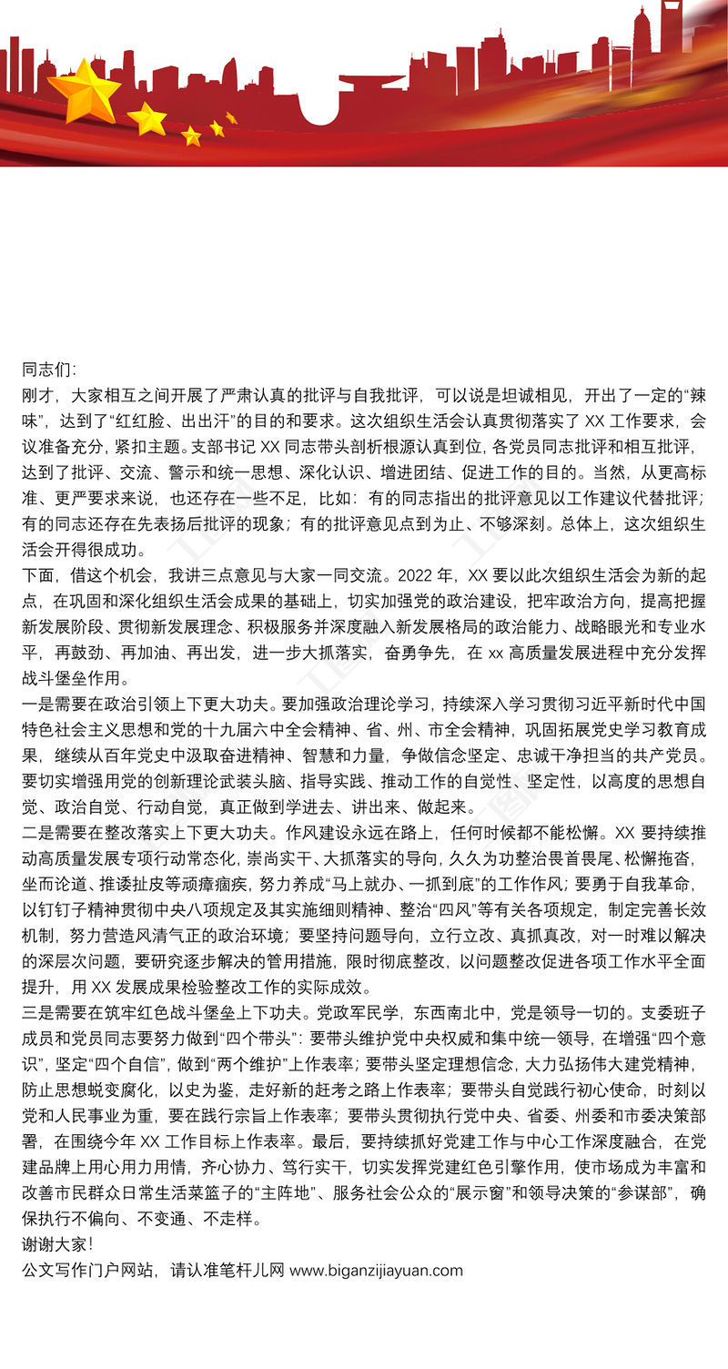 工圖網(wǎng)提供在支部2021年度組織生活會和民主評議黨員大會上的點評講話供會員免費下載。更多精彩黨課PPT素材,盡在工圖網(wǎng)。
