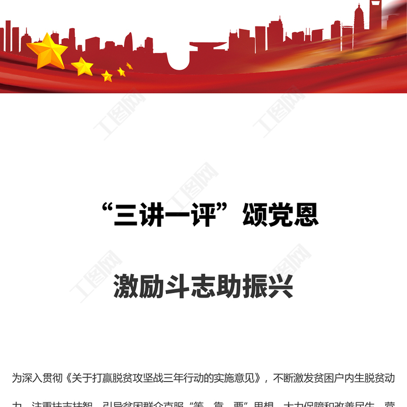 工圖網(wǎng)提供三講一評頌黨恩激勵斗志助振興PPT簡潔實用激發(fā)脫貧動力注重扶志扶智專題課件(講稿)供會員免費下載。更多精彩黨課PPT素材,盡在工圖網(wǎng)。