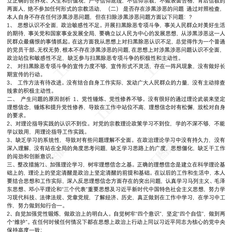 【不信教不涉黑等對照檢查】黨員“堅(jiān)定理想信念,嚴(yán)守黨紀(jì)黨規(guī)”專題組織生活會(huì)個(gè)人對照檢查材料(3篇)包含