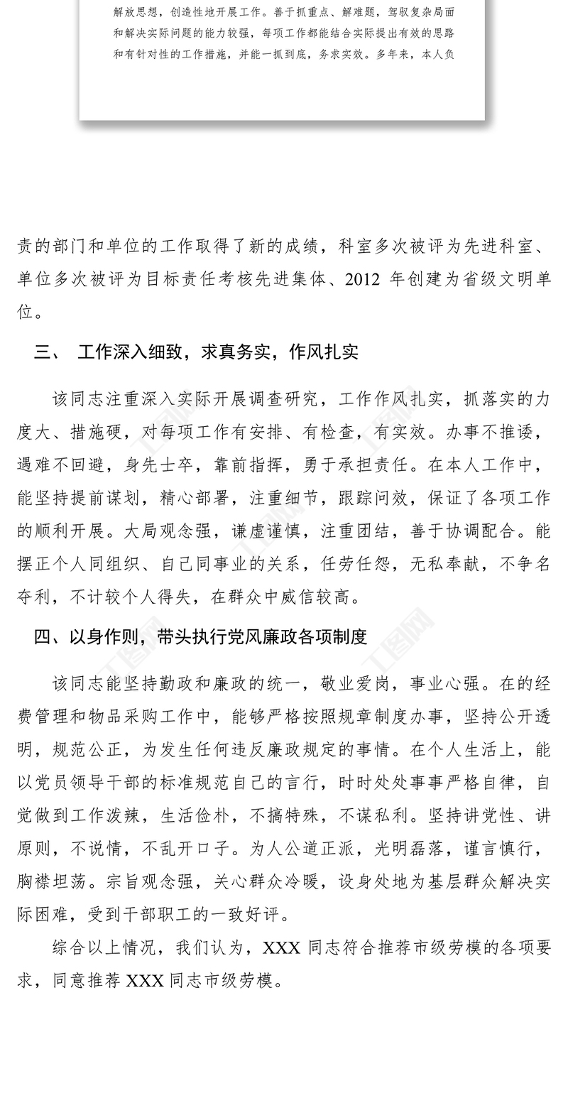 2021【公文模板】關(guān)于推薦XXX同志為市級(jí)勞模的的報(bào)告