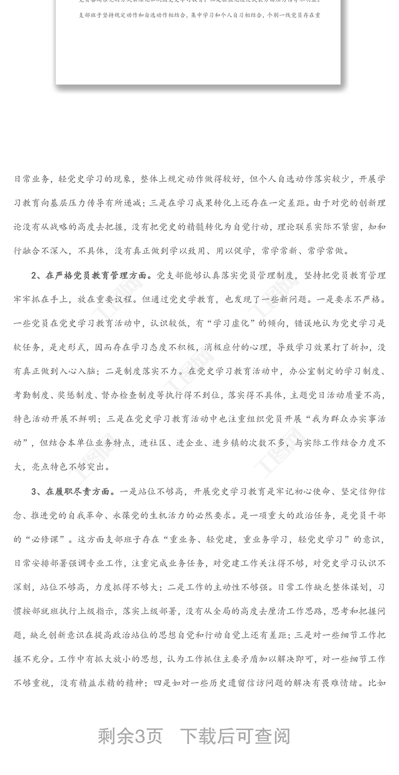 工圖網(wǎng)提供黨史學習教育專題組織生活會領(lǐng)導班子對照檢查材料(政法機關(guān)黨支部)供會員免費下載。更多精彩黨課PPT素材,盡在工圖網(wǎng)。