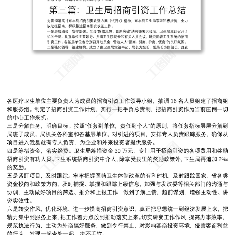 工圖網(wǎng)提供衛(wèi)生局招商引資工作總結(jié)供會員免費下載。更多精彩黨課PPT素材,盡在工圖網(wǎng)。