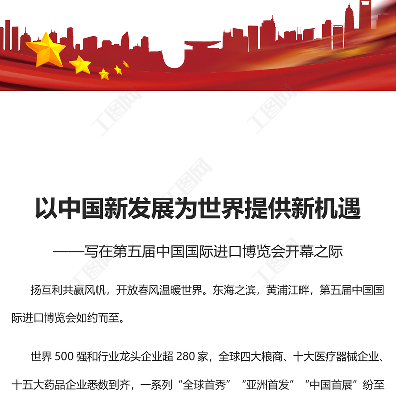 工圖網(wǎng)提供2022以中國新發(fā)展為世界提供新機遇PPT紅色精美寫在第五屆中國國際進口博覽會開幕之際專題黨課黨建課件(講稿)供會員免費下載。更多精彩黨課PPT素材,盡在工圖網(wǎng)。