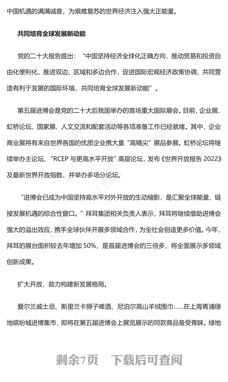 > 黨課講稿 > 2022以中國新發(fā)展為世界提供新機遇PPT紅色精美寫在第五屆中國國際進口博覽會開幕之際專題黨課黨建課件(講稿).DOCX 【圖片、文字、動畫均可編輯】