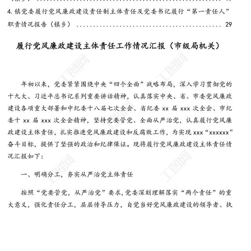 工圖網(wǎng)提供履行黨風(fēng)廉政建設(shè)主體責(zé)任工作情況匯報、報告匯編(4篇)(含鎮(zhèn)鄉(xiāng)、街道)供會員免費下載。更多精彩黨課PPT素材,盡在工圖網(wǎng)。