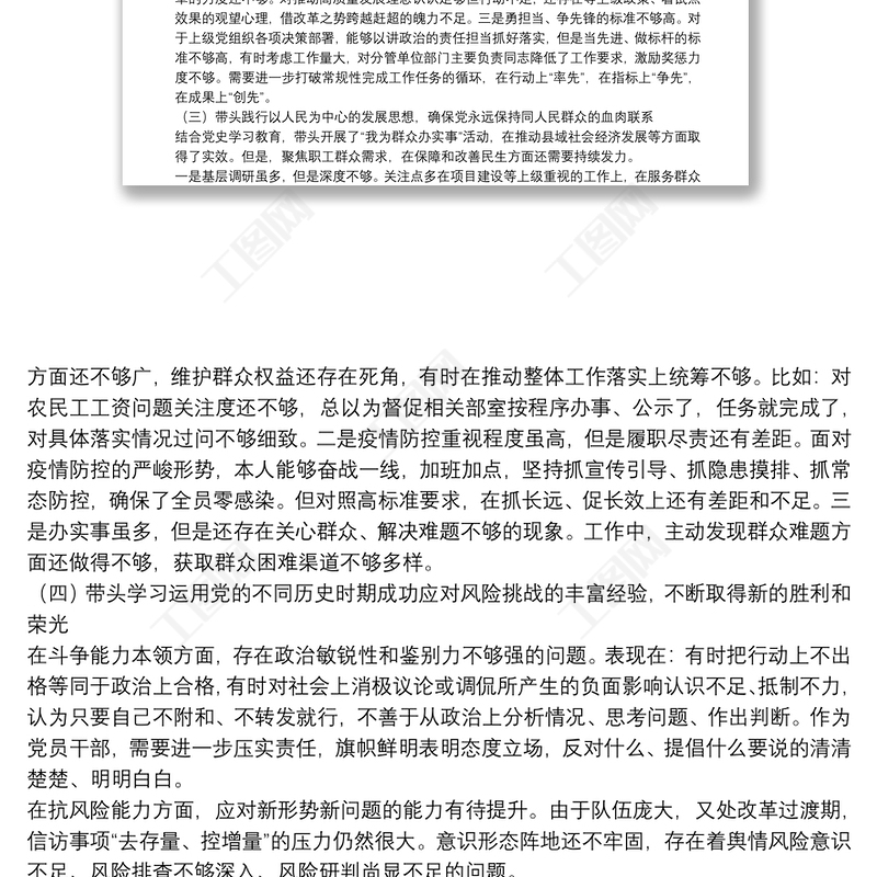 工圖網(wǎng)提供領(lǐng)導(dǎo)班子黨史學(xué)習(xí)教育專題民主生活會(huì)“五個(gè)帶頭”對(duì)照檢查材料供會(huì)員免費(fèi)下載。更多精彩黨課PPT素材,盡在工圖網(wǎng)。