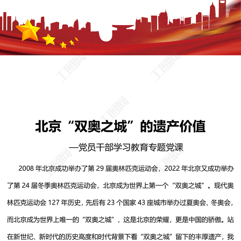 2023北京“雙奧之城”的遺產(chǎn)價(jià)值PPT大氣精美風(fēng)黨員干部學(xué)習(xí)教育專題黨課課件模板 Array