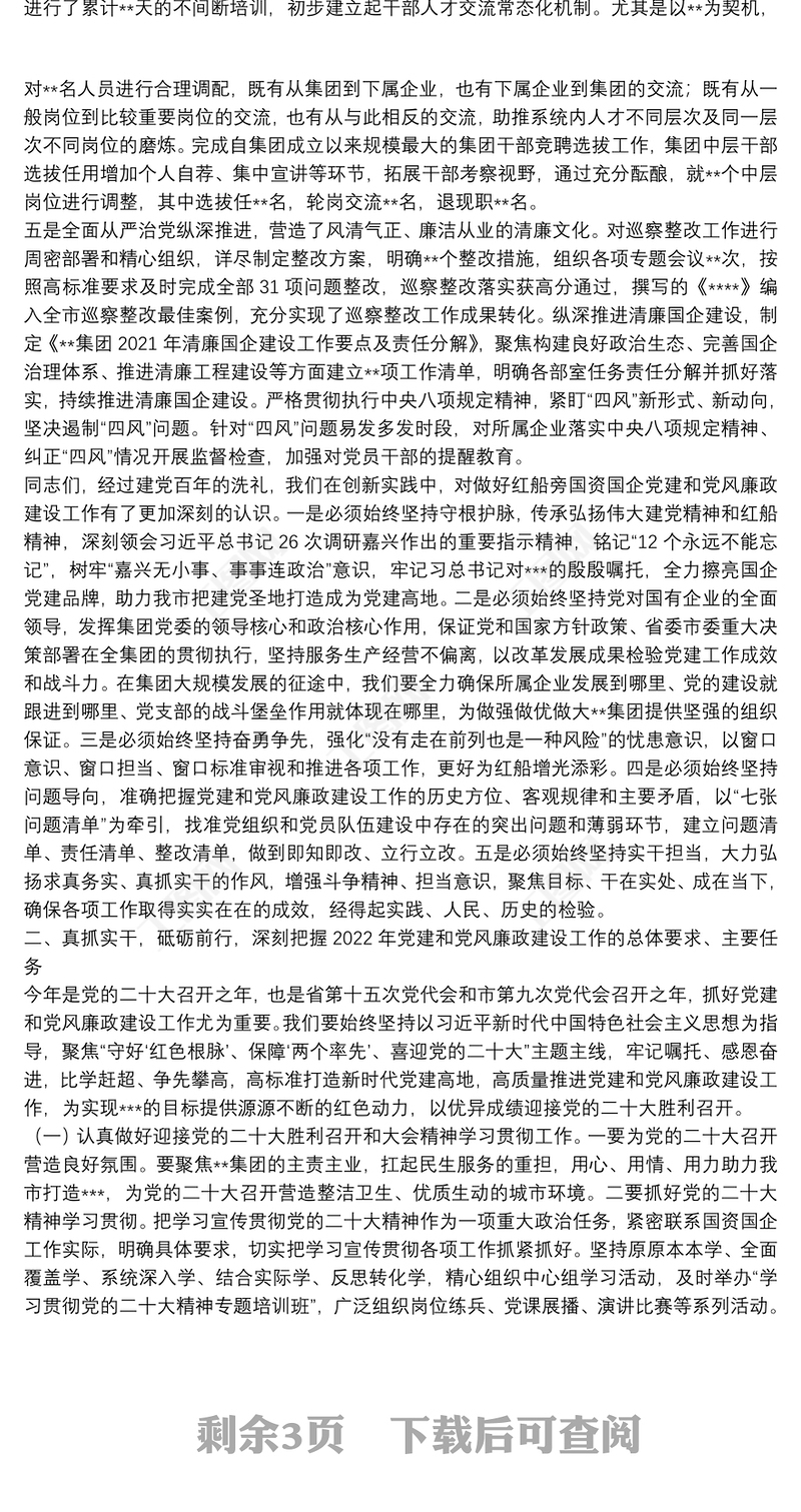 國企2022年度黨建與黨風(fēng)廉政建設(shè)工作部署會講話稿 Array