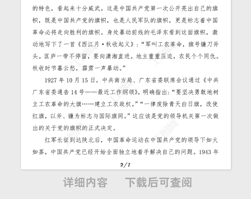 工圖網(wǎng)提供100周年黨課講稿黨旗的故事供會員免費下載。更多精彩黨課PPT素材,盡在工圖網(wǎng)。