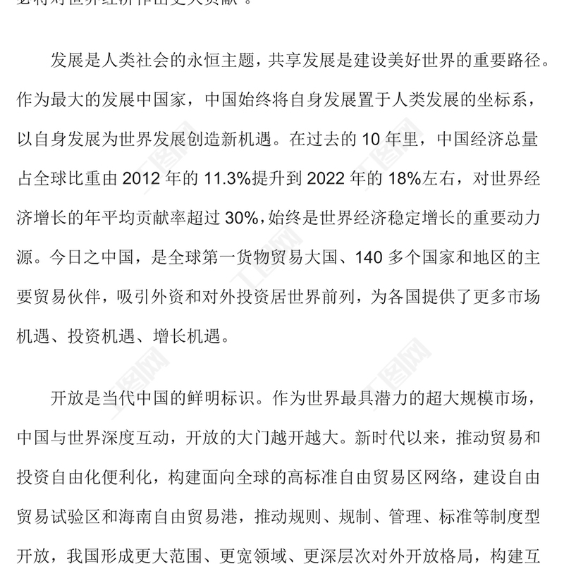 工圖網(wǎng)提供中國發(fā)展離與世界繁榮PPT紅色大氣中國將始終是世界發(fā)展的重要機遇專題課件下載 (講稿)供會員免費下載。更多精彩黨課PPT素材,盡在工圖網(wǎng)。
