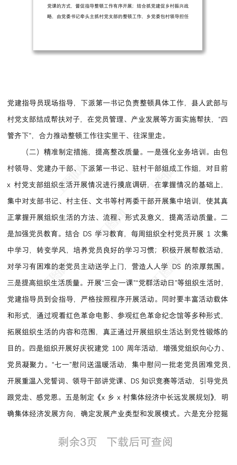 鄉(xiāng)鎮(zhèn)軟弱渙散黨組織整頓工作總結(jié)范文工作匯報(bào)報(bào)告