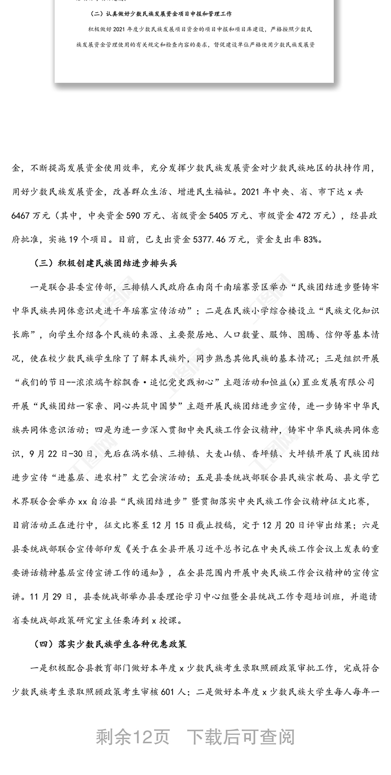 3篇2021年民族宗教工作總結和2022年工作計劃范文3篇民族宗教事務局工作匯報報告