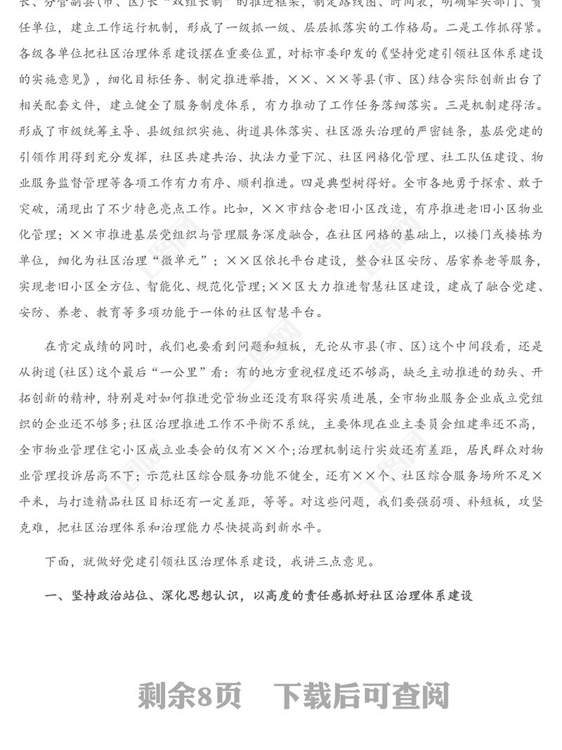 領導講話 > 在黨建引領社區(qū)治理體系建設觀摩推進會上的講話.DOCX