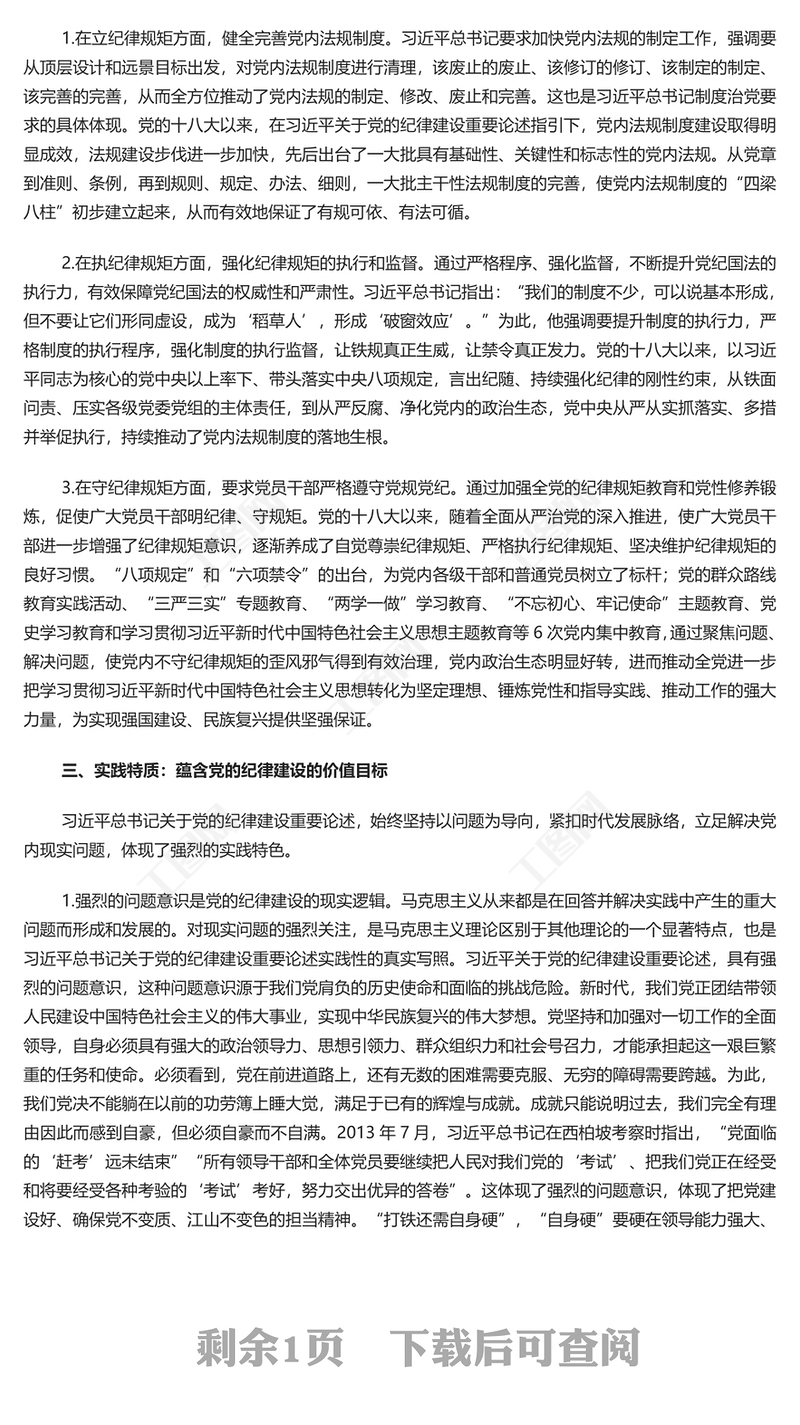 > 黨課講稿 > 關(guān)于黨的紀(jì)律建設(shè)重要論述的三維特質(zhì)PPT紅色簡潔學(xué)習(xí)教育黨課課件模板(講稿).DOCX 【圖片、文字、動畫均可編輯】