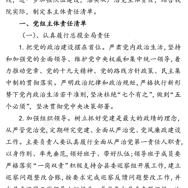 法院落實全面從嚴治黨、黨風廉政建設主體責任清單,從嚴治黨,公文 Array