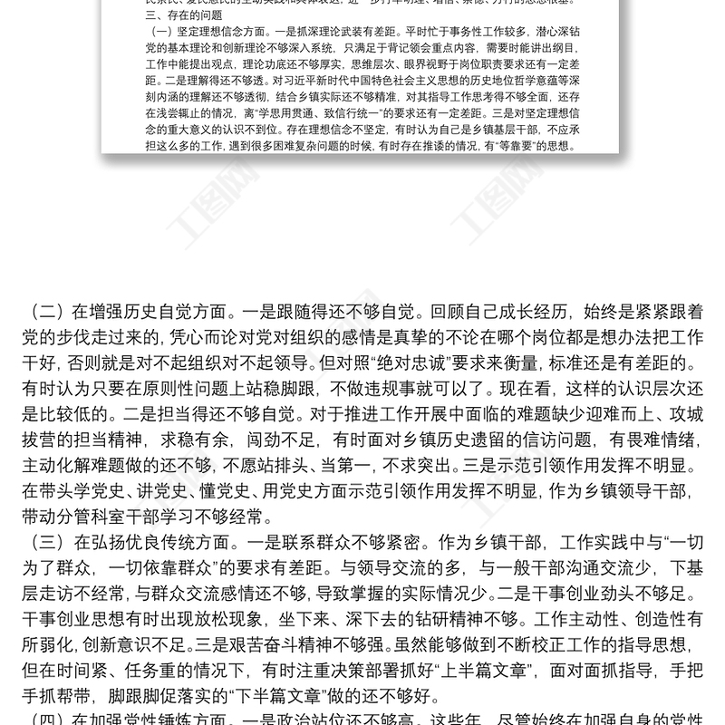 工圖網(wǎng)提供XX鄉(xiāng)鎮(zhèn)領(lǐng)導(dǎo)黨史學(xué)習(xí)教育專(zhuān)題組織生活會(huì)檢視剖析材料供會(huì)員免費(fèi)下載。更多精彩黨課PPT素材,盡在工圖網(wǎng)。