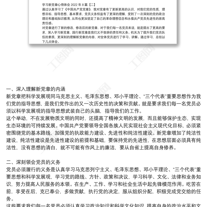 工圖網(wǎng)提供學(xué)習(xí)新黨章心得體會(huì)2022年8篇供會(huì)員免費(fèi)下載。更多精彩黨課PPT素材,盡在工圖網(wǎng)。