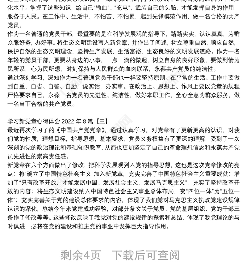 學(xué)習(xí)新黨章心得體會(huì)2022年8篇