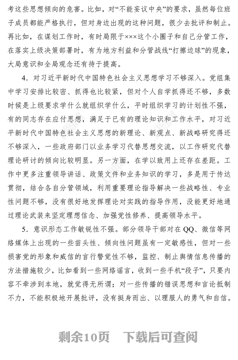 > 對(duì)照檢查 > 2021【查擺問(wèn)題匯總】領(lǐng)導(dǎo)班子民主生活會(huì)對(duì)照檢查材料(領(lǐng)導(dǎo)班子).DOCX 【圖片、文字、動(dòng)畫(huà)均可編輯】