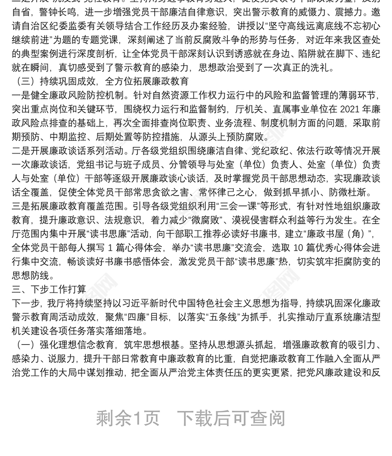 2022黨風(fēng)廉政警示教育片2022鄉(xiāng)鎮(zhèn)防范政治安全風(fēng)險(xiǎn)工作開(kāi)展情況報(bào)告2021肅清流毒大討論活動(dòng)開(kāi)展情況匯報(bào)2022黨風(fēng)廉政警示教育大會(huì)會(huì)議紀(jì)要2022組織觀(guān)看《廉政警示教育片》的實(shí)施方案2022藥械科廉政警示教育活動(dòng)表態(tài)發(fā)言2022觀(guān)看廉政警示教育片實(shí)施方案2022全年黨風(fēng)廉政警示教育工作總結(jié)2022廉政警示教育大會(huì)方案2022廉政警示教育檢視剖析總結(jié)2022觀(guān)看廉政警示教育片表態(tài)發(fā)言2023廉政警示教育活動(dòng)實(shí)施方案2023廉政警示教育活動(dòng)方案2023大學(xué)新時(shí)代中國(guó)特色社會(huì)主義思想開(kāi)展情況報(bào)告2023教師廉政警示教育活動(dòng)計(jì)劃