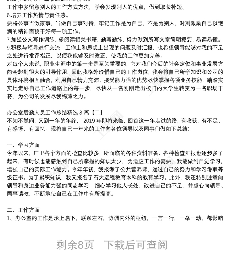 辦公室后勤人員工作總結(jié)精選8篇 Array