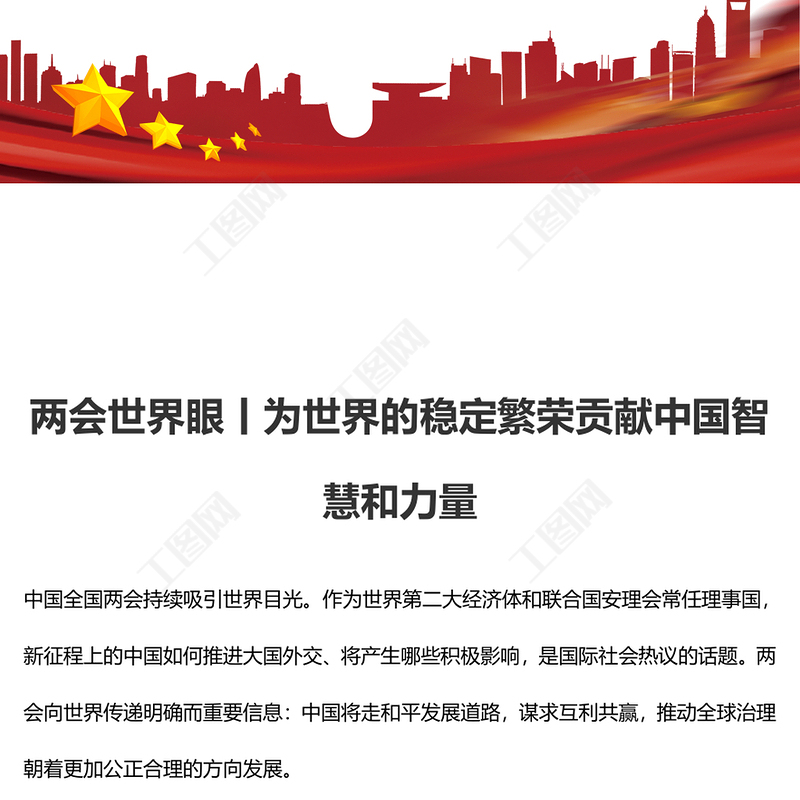 工圖網(wǎng)提供兩會世界眼丨為世界的穩(wěn)定繁榮貢獻(xiàn)中國智慧和力量供會員免費下載。更多精彩黨課PPT素材,盡在工圖網(wǎng)。