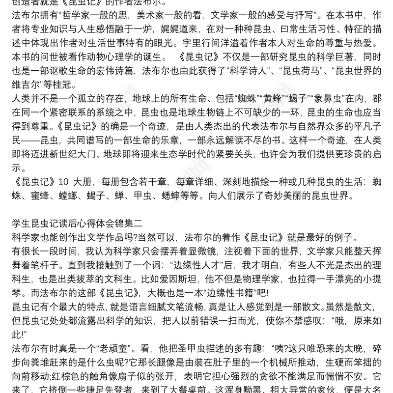 學(xué)生昆蟲記讀后心得體會錦集