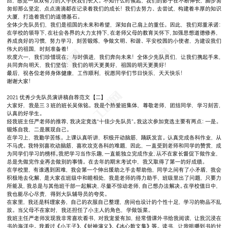 2021優(yōu)秀少先隊員演講稿自薦范文 Array