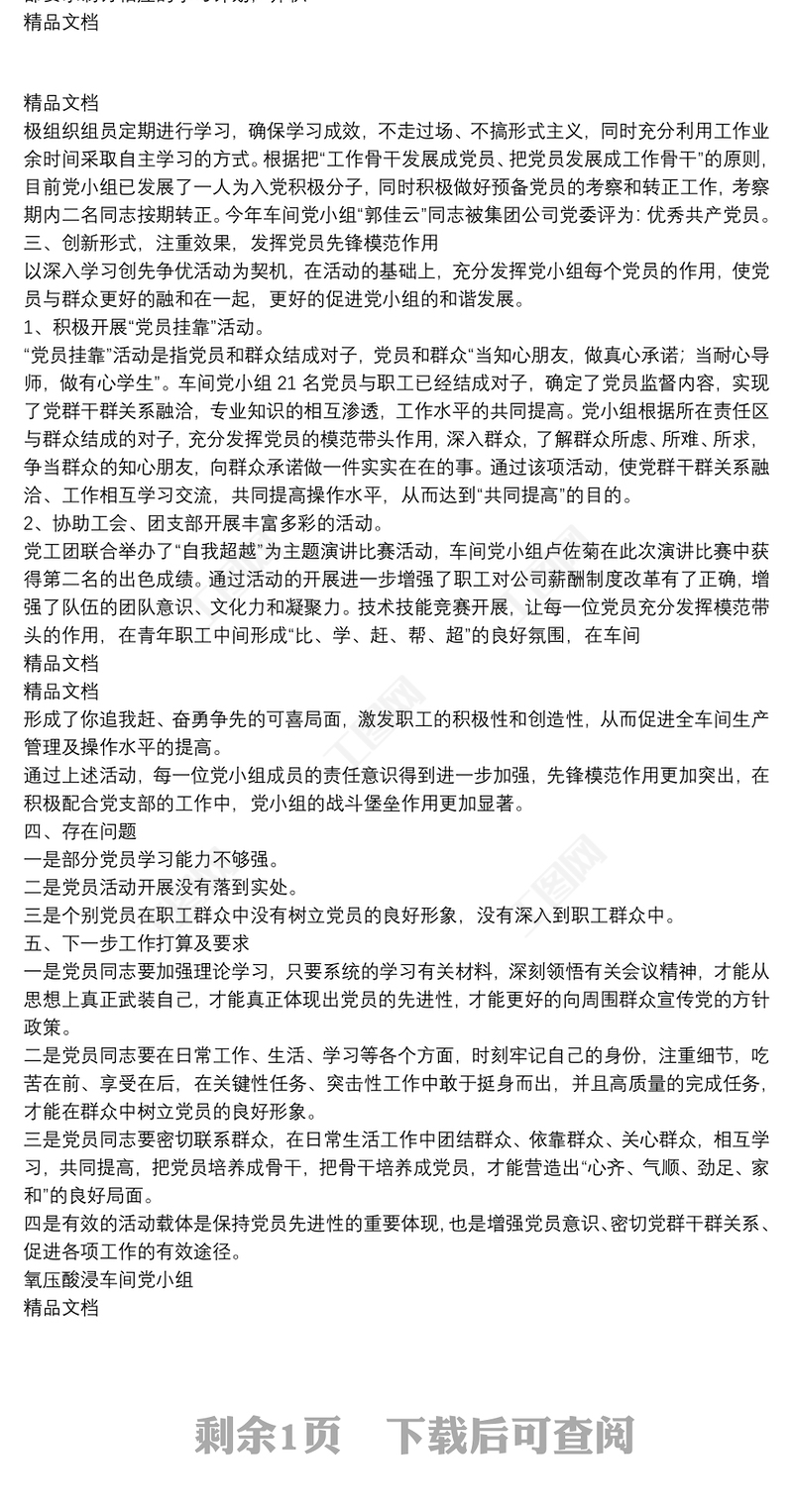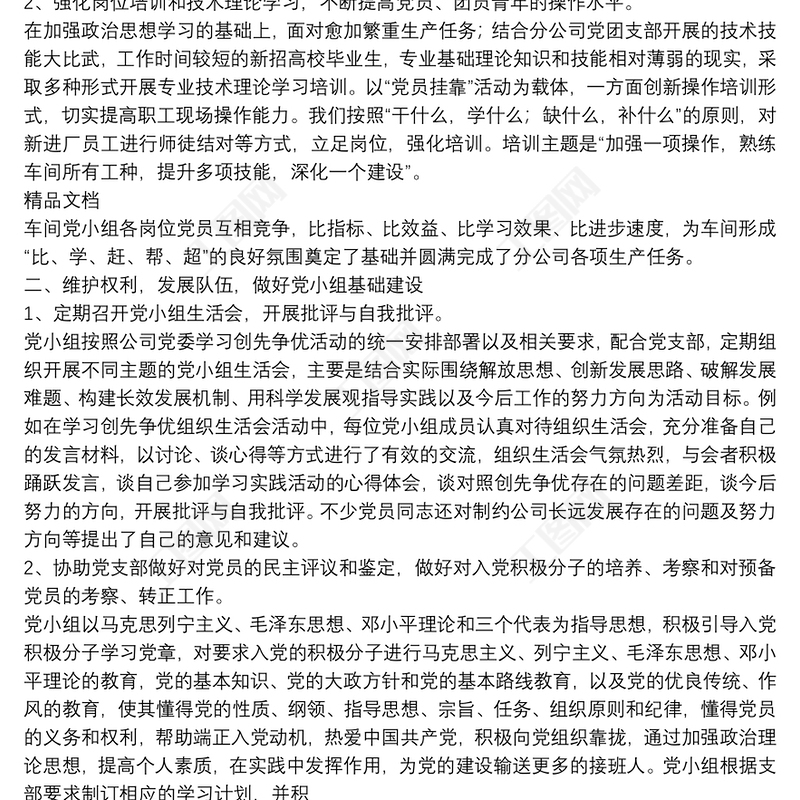 最新黨小組工作總結(jié)