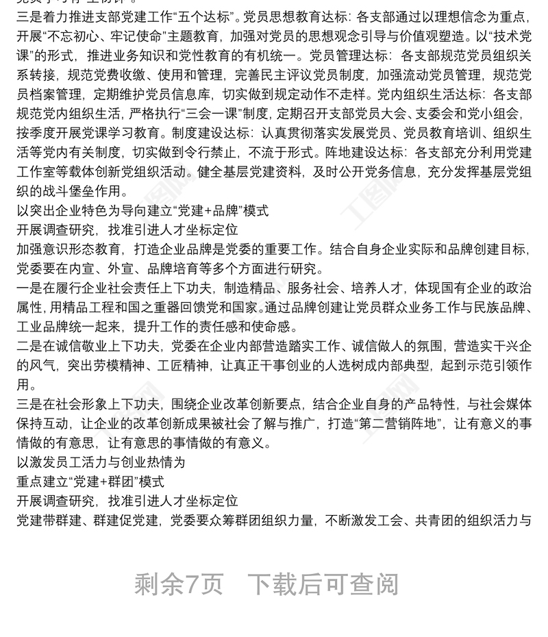 國有企業(yè)2022年黨建工作思路2022年國企黨建工作方向和思路2022銀行黨建品牌創(chuàng)建工作方案2021年建黨100周年黨建工作總結(jié)2022黨建工作與安全生產(chǎn)深度融合發(fā)言材料機關(guān)黨支部2022年度機關(guān)黨建工作計劃工作要點2022國企黨建品牌創(chuàng)建工作方案2023學(xué)校黨建工作季度工作總結(jié)2024抓好機關(guān)黨建工作的建議2023黨群紀(jì)檢黨建工作年度總結(jié)2023國企黨建宣傳思想工作總結(jié)2023關(guān)于加強國企黨建工作總結(jié)2023國企黨建工作概述總結(jié)2023國企黨建促融合工作總結(jié)2023黨建工作月度總結(jié)與計劃