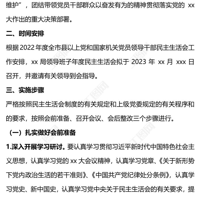 > 黨課講稿 > 2023領(lǐng)導(dǎo)班子民主生活會(huì)方案PPT紅色黨政風(fēng)黨員干部學(xué)習(xí)教育專題黨課黨建課件模板(講稿).DOCX 【圖片、文字、動(dòng)畫均可編輯】