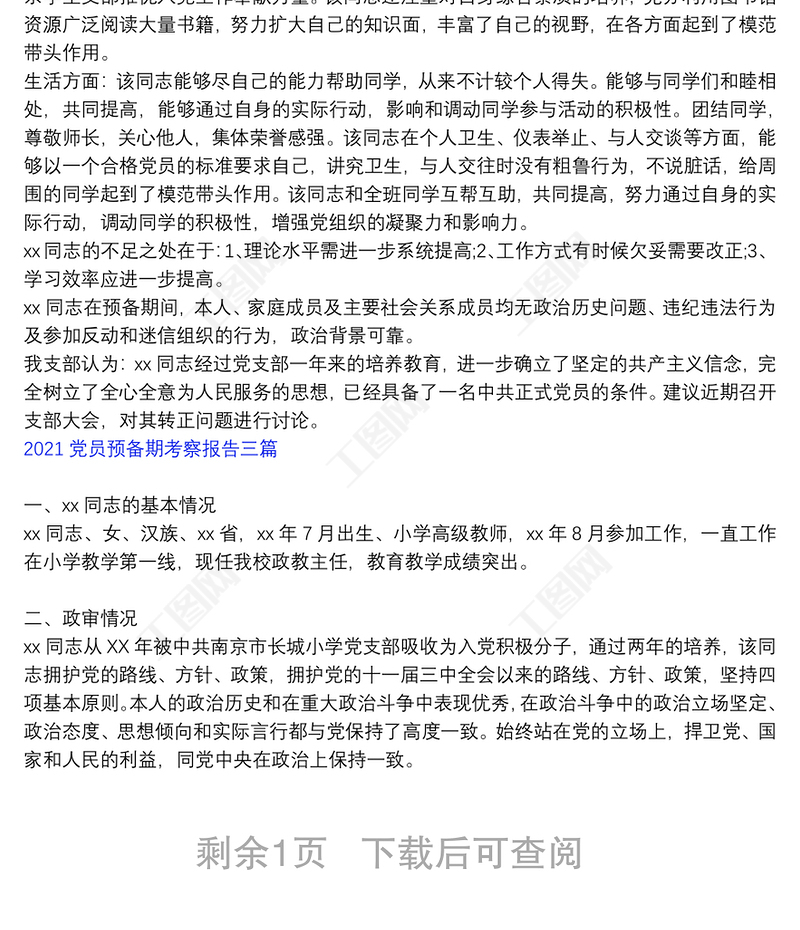 工圖網(wǎng)提供2021黨員預(yù)備期考察報(bào)告三篇供會員免費(fèi)下載。更多精彩黨課PPT素材,盡在工圖網(wǎng)。