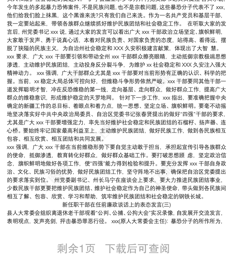 新任職干部在任前廉政談話上的表態(tài)發(fā)言精選三篇 Array