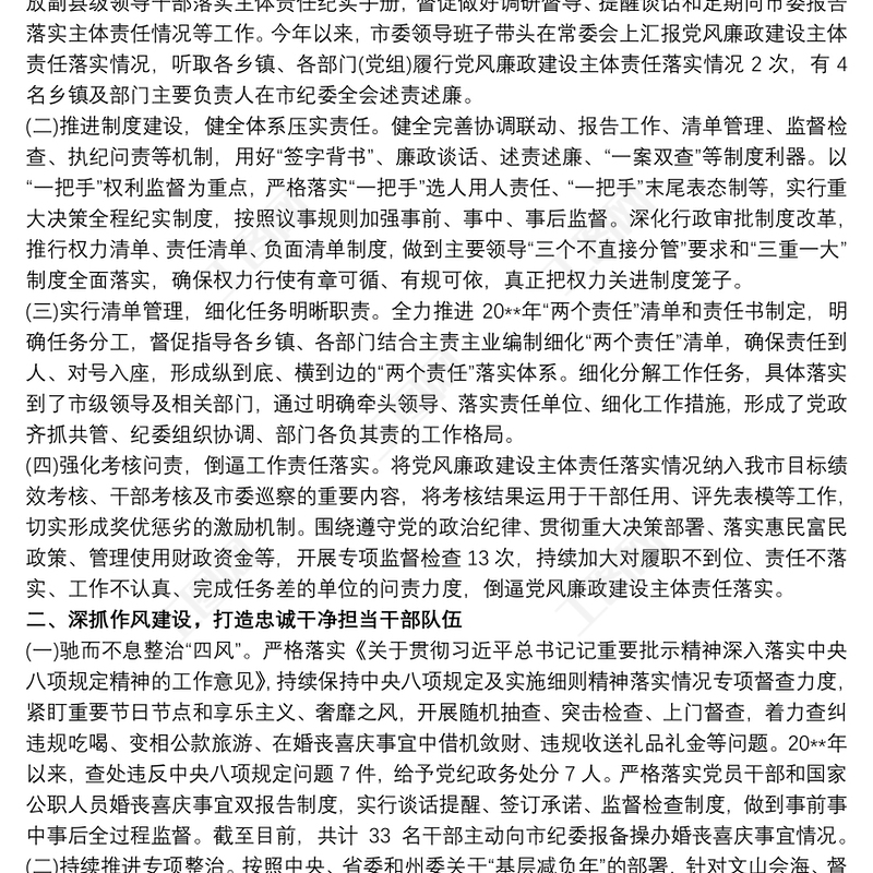 20xx年度黨政領(lǐng)導(dǎo)班子履行黨風(fēng)廉政建設(shè)主體責(zé)任情況工作匯報(bào) Array
