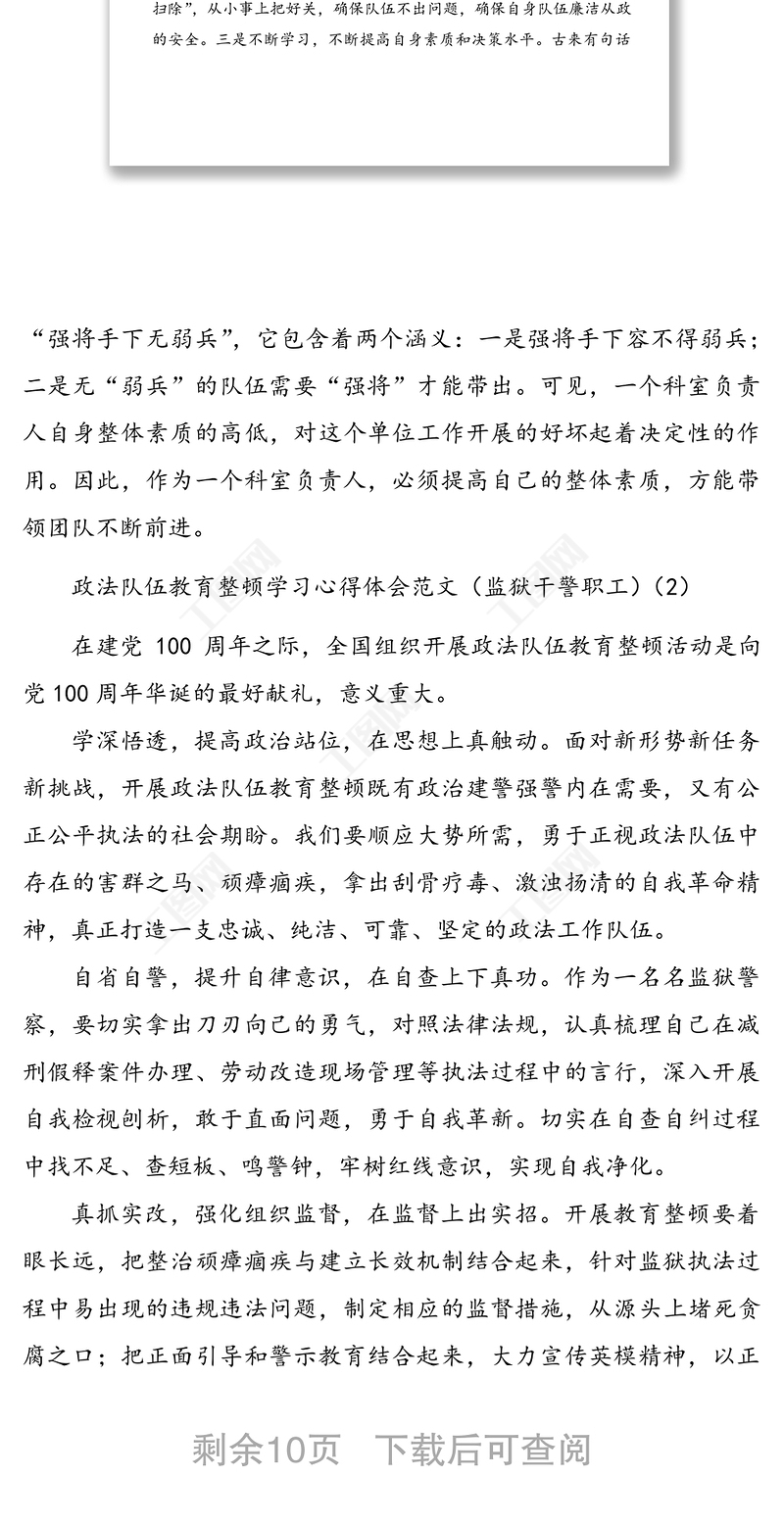 首頁 > WORD文檔 > 心得體會 > 2021年政法隊伍教育整頓學(xué)習(xí)心得體會范文10篇.DOCX 【圖片、文字、動畫均可編輯】