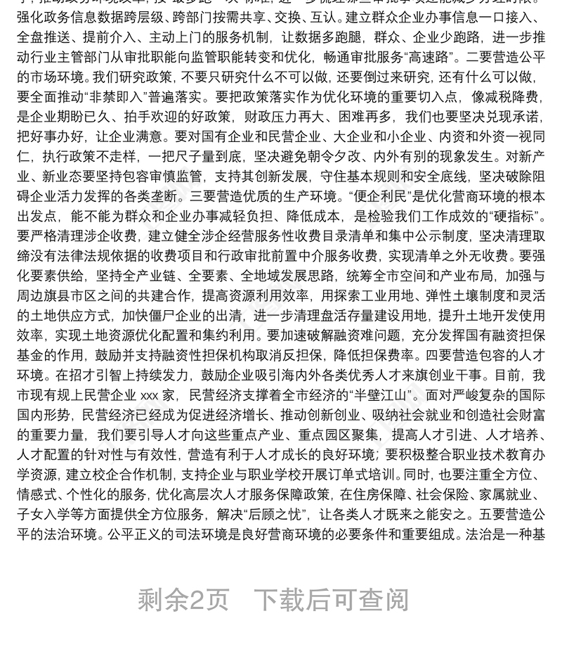 2021民警優(yōu)化營商環(huán)境自我剖析材料2022整頓干部作風(fēng)優(yōu)化營商環(huán)境談心談話內(nèi)容2022企業(yè)家在營商環(huán)境座談會(huì)上的發(fā)言稿2022農(nóng)業(yè)農(nóng)村局優(yōu)化營商環(huán)境自檢自查報(bào)告2021教師優(yōu)化營商環(huán)境討論發(fā)言2021優(yōu)化營商環(huán)境研討交流材料2022法院優(yōu)化營商環(huán)境工作總結(jié)2022遼寧優(yōu)化營商環(huán)境建議2021縣委政法委優(yōu)化營商環(huán)境發(fā)言材料2023優(yōu)化營商環(huán)境廉政談話內(nèi)容2023正風(fēng)肅紀(jì)優(yōu)化營商環(huán)境講話2023社區(qū)黨建優(yōu)化營商環(huán)境總結(jié)