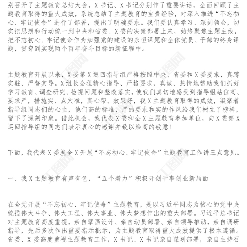 工圖網(wǎng)提供在“不忘初心牢記使命”主題教育總結(jié)大會(huì)上的講話工作會(huì)議講話供會(huì)員免費(fèi)下載。更多精彩黨課PPT素材,盡在工圖網(wǎng)。