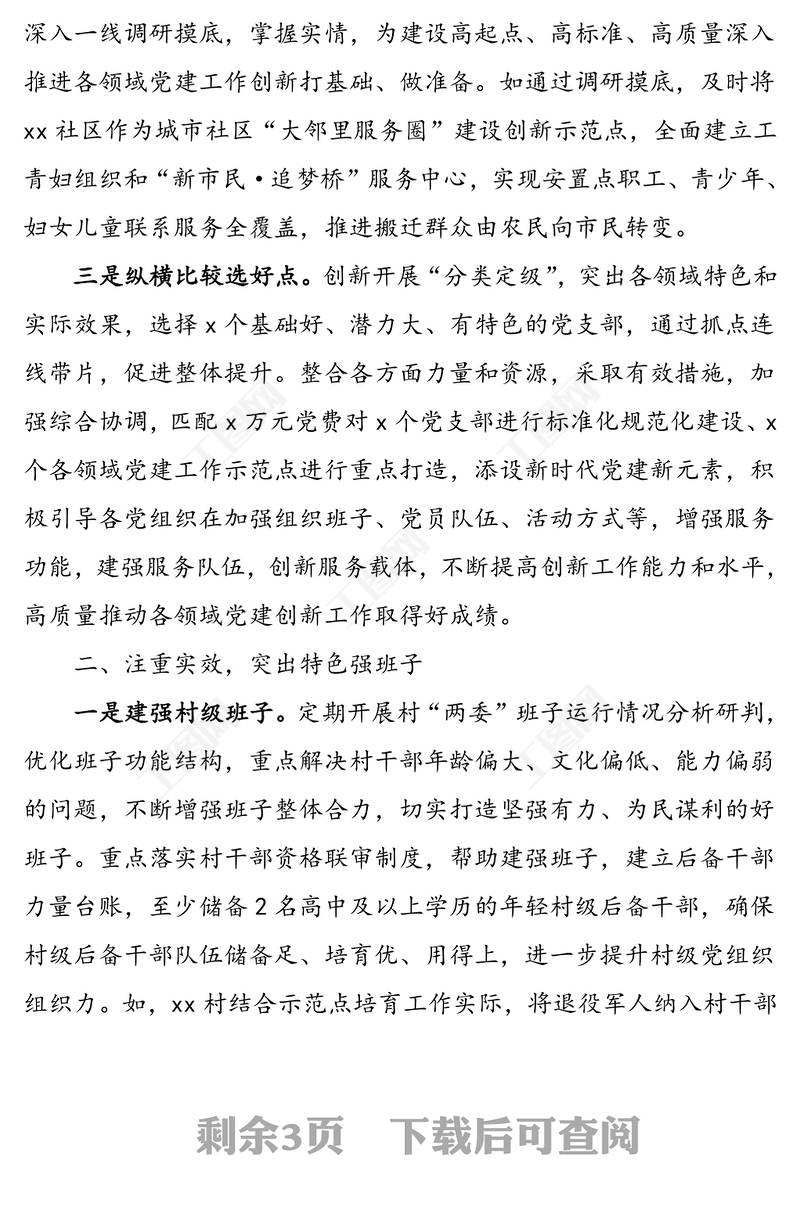 2022年度黨支部書記抓基層黨建述職領(lǐng)導(dǎo)在2022年機(jī)關(guān)黨組織書記抓基層黨建述職評議會上的點(diǎn)評講話2022年派出所黨支部書記抓基層黨建工作述職報告2022有事好商量工作經(jīng)驗(yàn)交流材料在全市平安建設(shè)工作經(jīng)驗(yàn)交流會上的發(fā)言材料2021基層黨建工作調(diào)查研究記錄20212021年基層黨建示范點(diǎn)創(chuàng)建工作實(shí)施方案2022公司關(guān)于推進(jìn)基層黨建三基本建設(shè)與三基工作有機(jī)融合的實(shí)施方案村委會抓基層黨建工作述職報告2022年最新2022抓基層黨建和人才工作述職報告2021基層黨建工作任務(wù)清單2021基層黨建專項(xiàng)整治工作推進(jìn)會發(fā)言材料2023中交基層黨建標(biāo)桿創(chuàng)建總結(jié)2023創(chuàng)建基層黨建特色品牌計(jì)劃