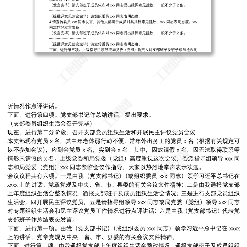 工圖網(wǎng)提供第二批“不忘初心、牢記使命”主題教育基層黨支部組織生活會和開展民主評議黨員會議主持詞供會員免費下載。更多精彩黨課PPT素材,盡在工圖網(wǎng)。
