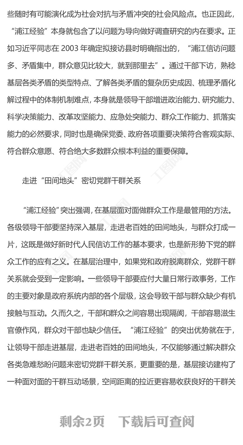 > 黨課講稿 > 2023深刻把握“浦江經(jīng)驗”的治理啟示PPT精美簡潔新時代信訪工作做好調(diào)查研究密切干群關系黨課課件(講稿).DOCX 【圖片、文字、動畫均可編輯】