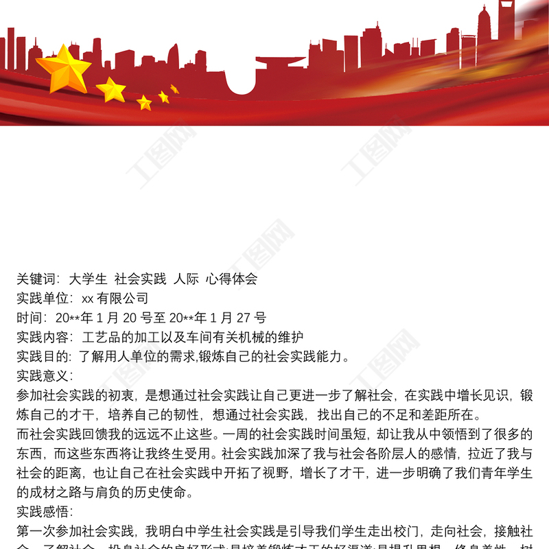 工圖網(wǎng)提供[寒假社會(huì)實(shí)踐報(bào)告1500]20xx年度寒假社會(huì)實(shí)踐報(bào)告范文供會(huì)員免費(fèi)下載。更多精彩黨課PPT素材,盡在工圖網(wǎng)。