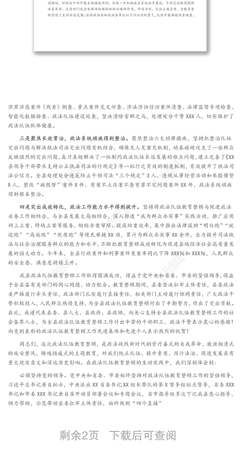 在全縣政法隊(duì)伍教育整頓總結(jié)表彰大會(huì)上的講話
