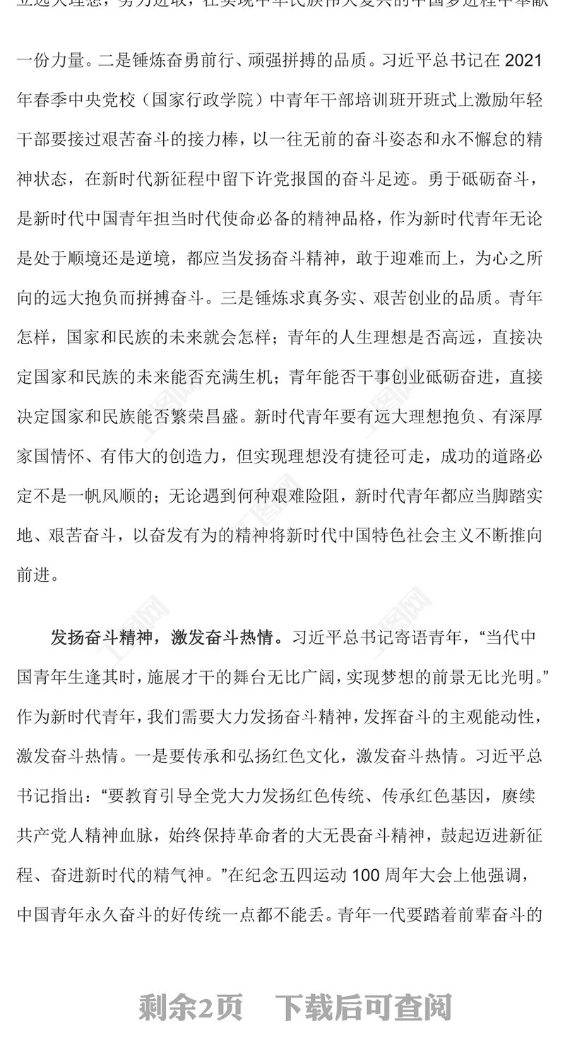 > 黨課講稿 > 新時(shí)代青年奮斗精神PPT錘煉奮斗品質(zhì)激發(fā)奮斗熱情增強(qiáng)奮斗本領(lǐng)做肯奮斗的新時(shí)代好青年微黨課下載(講稿).DOCX 【圖片、文字、動(dòng)畫均可編輯】