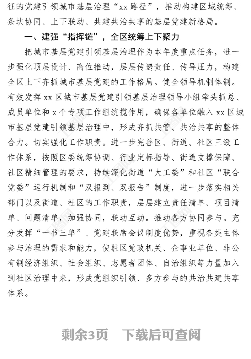 工圖網(wǎng)提供高質(zhì)量黨建引領(lǐng)城市基層治理典型工作經(jīng)驗(yàn)材料匯報(bào)總結(jié)報(bào)告供會(huì)員免費(fèi)下載。更多精彩黨課PPT素材,盡在工圖網(wǎng)。