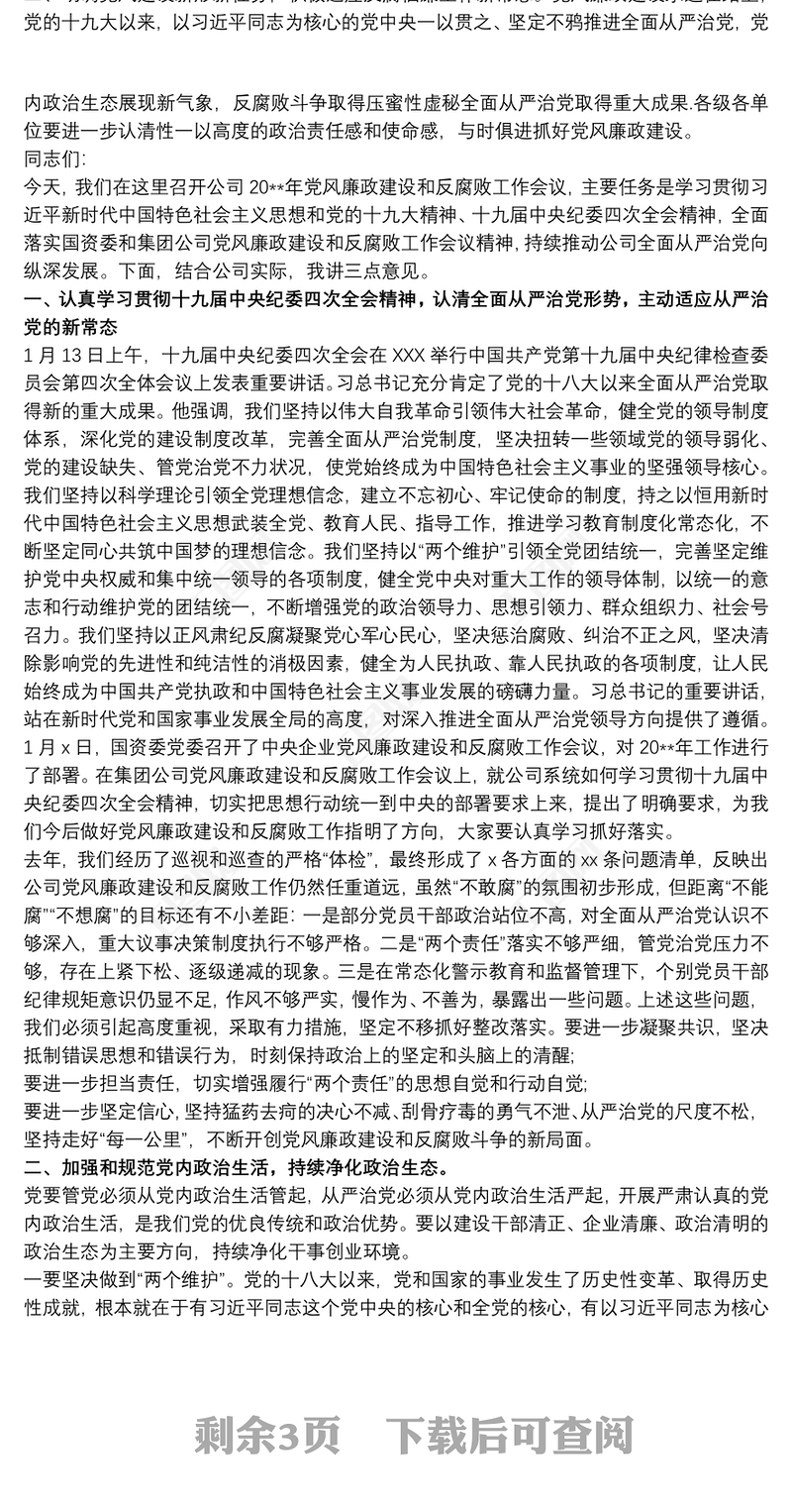 在20xx年黨風廉政建設(shè)和反腐敗工作會議上講話