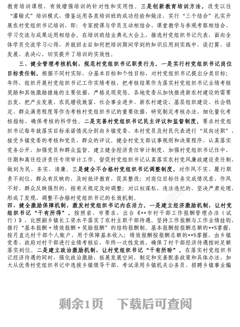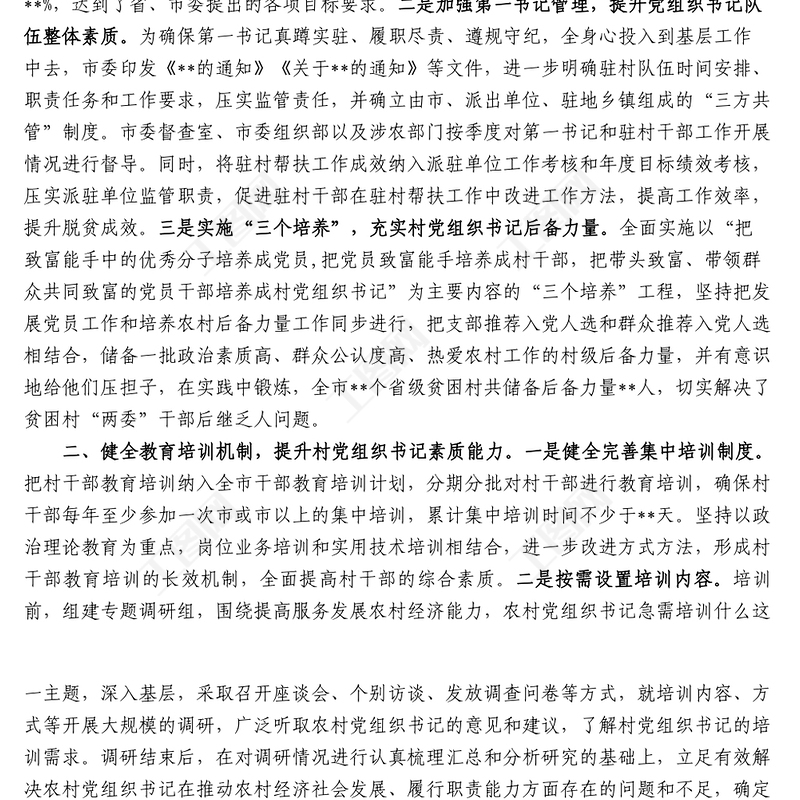 市加強(qiáng)村社區(qū)黨組織書記隊(duì)伍建設(shè)情況匯報(bào)